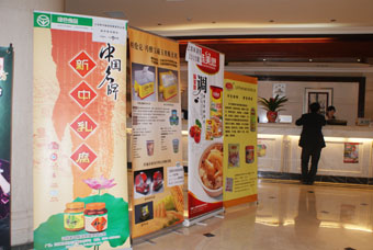 众多调味品企业也纷纷为商会组织的这次展示洽谈活动,各显神通。在活动的酒店现场,到处都是企业易拉宝、宣传单页的摆设,各式各样,精彩风尘。虽然企业的宣传各式各样,但是,由于该活动是在商会的规范组织下开展的,宣传的摆设自然是规矩整齐,充分显现商会主办的活动的正规性。在酒店大厅能看到主办方搭设的接待处。明显的标示给参加活动的商家都省了少精力。